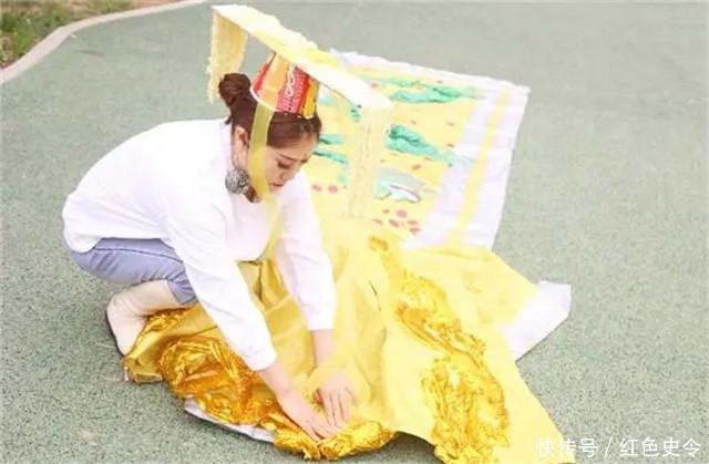 河南有位43岁的大姐,就以麻袋作念龙袍,效法“女皇”,在短视频上走红之后被23家公司看中。